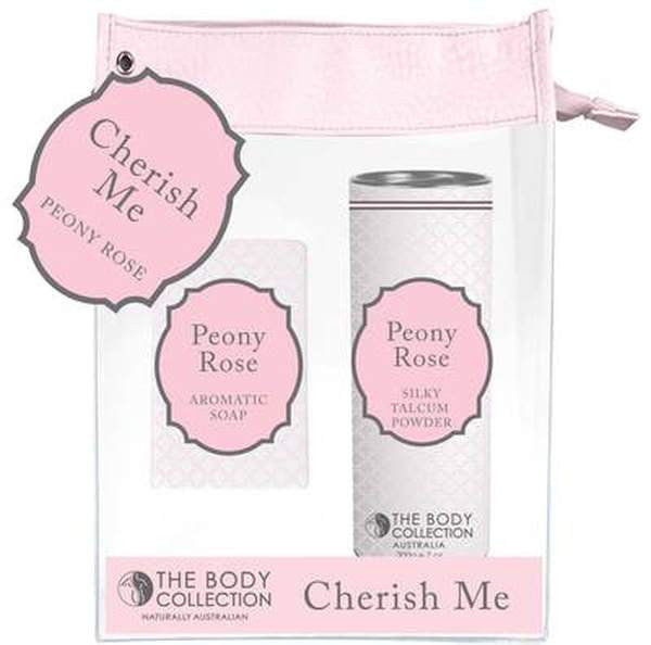 Gift pack which contains 150g Aromatic Soap and 125g Silky Talcum Powder. Both Peony Rose scented.