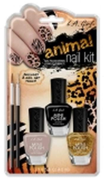 These 3 piece nail polish kits allow you to create fun looks on your nails with textured decorations and nailpolishes! Includes 2 nail art tools. LA Girl - Nail Kit - Animal