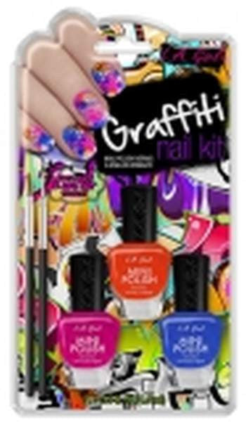 These 3 piece nail polish kits allow you to create fun looks on your nails with textured decorations and nailpolishes! Includes 2 nail art tools. LA Girl - Nail Kit - Graffiti