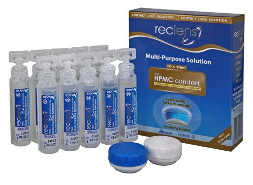 A medium sized blue box containing 10x 10ml ampules and a complimentary lens case.