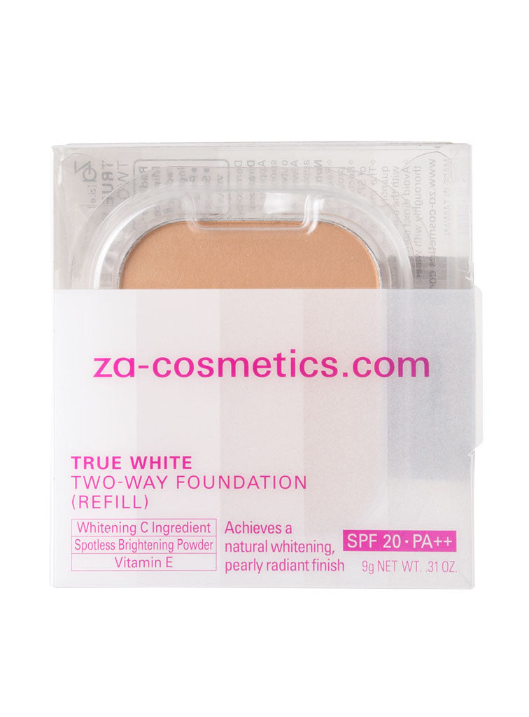 Contains vitamin C powder to help diminish dark spots and acne scars. Beautifully conceals problem areas - dark spots, acne scars, dullness and conspicuous pores, with a natural finish. This SPF 20 foundation can be used both wet and dry and protects from UVA / UVB sun rays whilst giving an even, perfect skin tone. REFILL Za - True White 2-Way Foundation (Refill) - 20